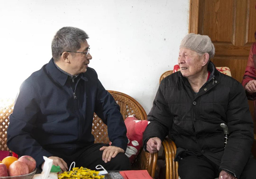 上午,揭小健一行首先看望慰问抗战时期参加革命工作的离休干部贺有富,与贺老亲切交谈,详细询问老人的身体状况与生活情况,为他送去党组织的关怀与温暖,向他致以亲切的问候和新春的祝福。