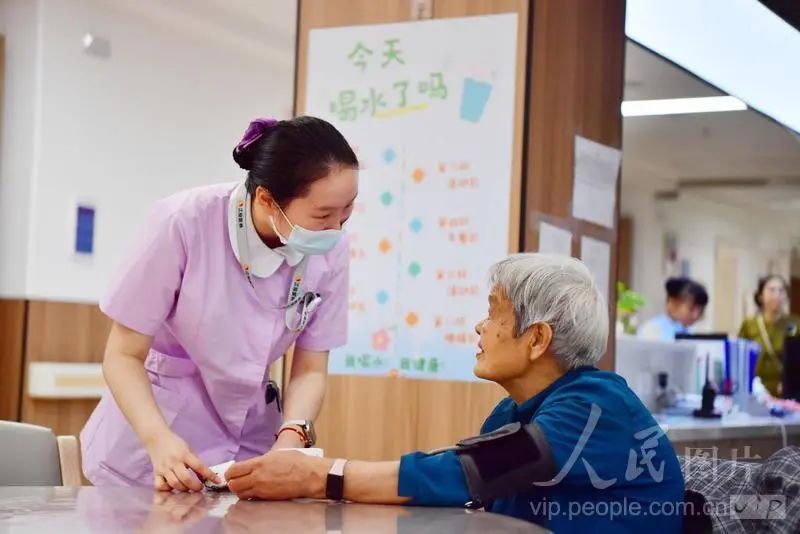2024年5月12日,江西省南昌市,在颐养·北园的文娱室里,护理员正带领老人们开展乐器演奏训练,丰富养老人员的日常生活。